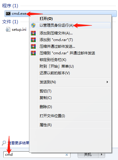 第3步:在电脑桌面点击 - 开始菜单,输入cmd,右击cmd - 选择以管理员身份运行