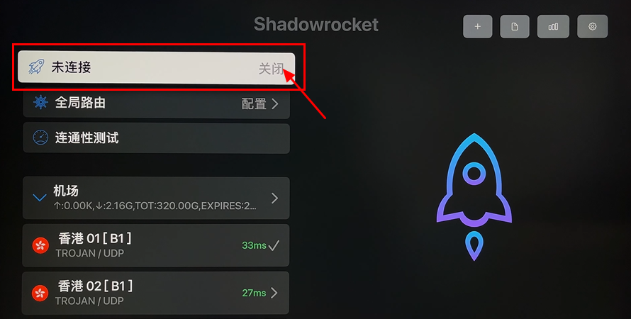 第3步 导入添加订阅节点:打开 - Shadowrocket,点击 - 添加节点